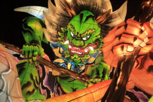 あ、ちなみに、ねぶたを撮影する際、全体を引きで撮ると綺麗なんですが迫力が薄れます。迫力ある写真を撮る場合は寄せて撮る、一部を切り取る方向で撮影するといいと思います。(↓こんなふうに)
