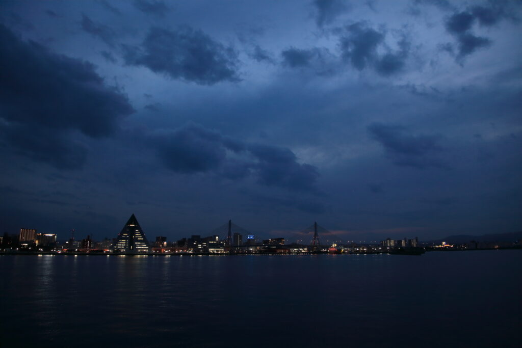 アスパムの建物と青森ベイブリッジの橋脚の▲が綺麗に並んでいます(笑)